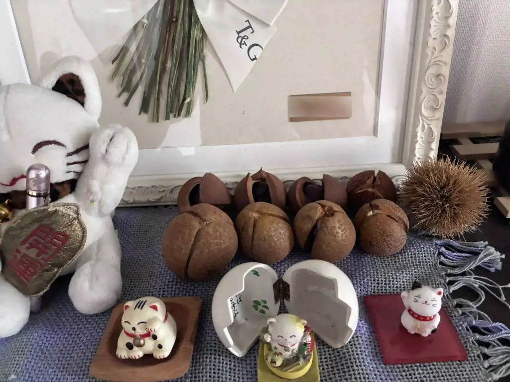 開運猫みたいで縁起がいいので毎年収集しています(後列が昨年のもの)
