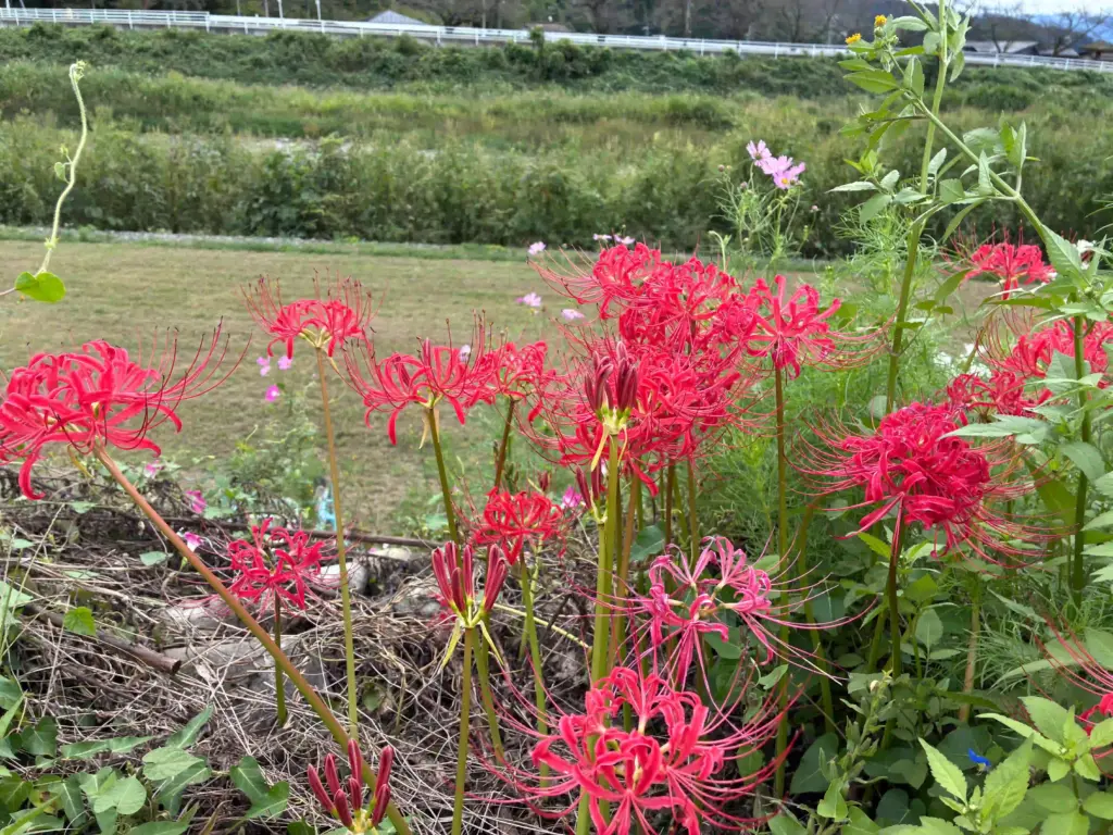 彼岸花の根(球根)には毒性がありモグラやネズミ対策として田んぼのあぜ道に植えられたらしい
