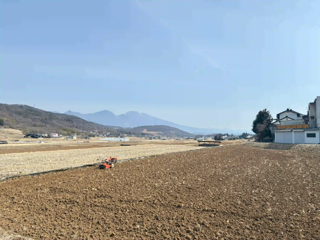 これを「秋起こし」「冬ぶち」などと言いますが、 この状態で塊状になった土を細かく砕き土に空気を入れて排水性、通気性を高めるのが「春起こし」「春ぶち」と言うんです
