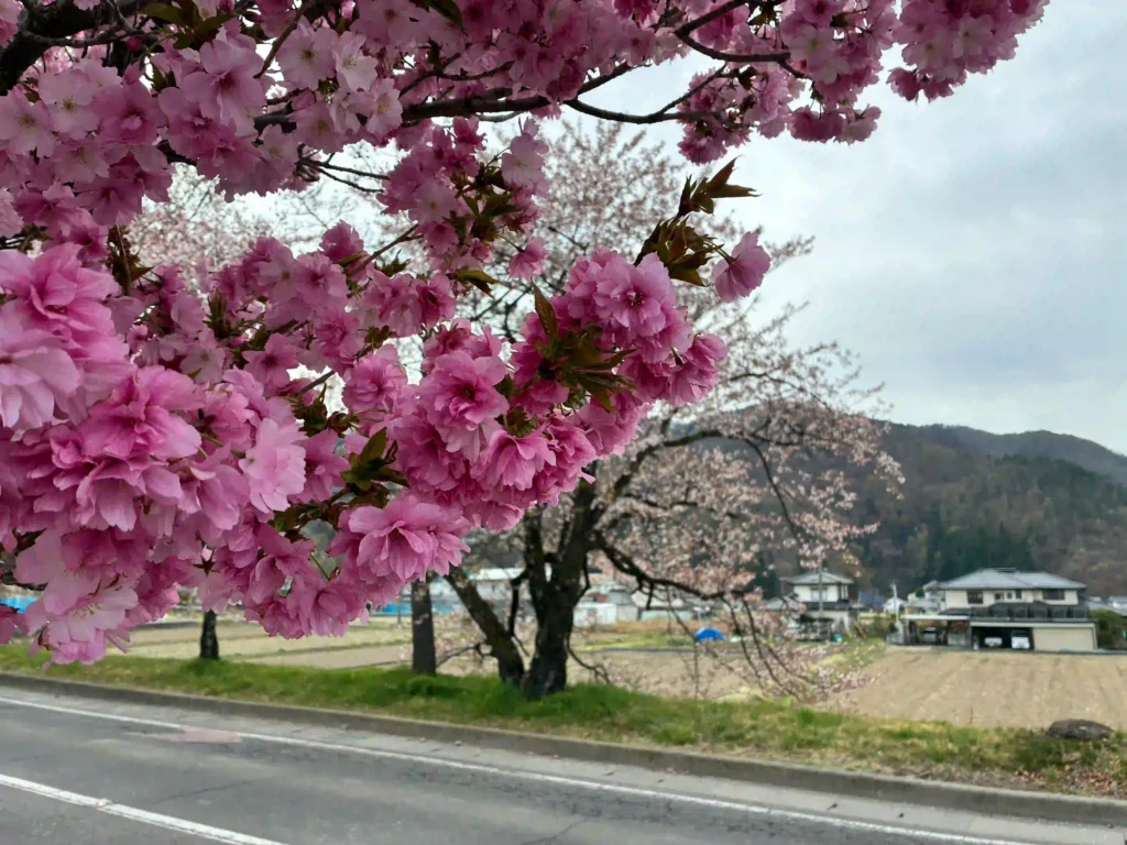 ぽつんと周りを気にせず一人で咲き誇っているのは「八重桜」